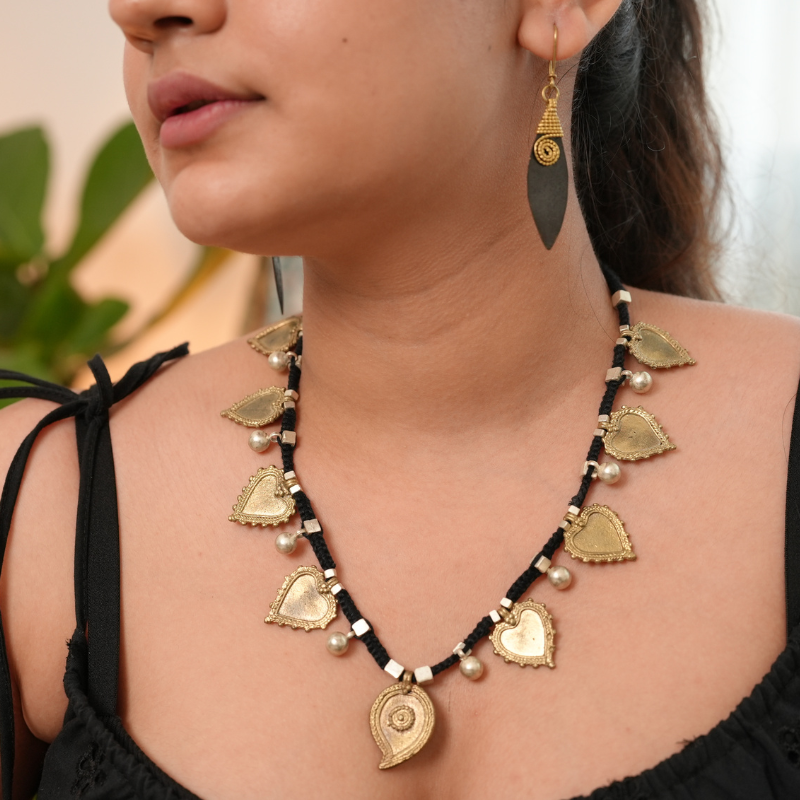 A stunning handwoven brass beads neckpiece, crafted with precision and care, blending traditional artistry with contemporary elegance. Perfect for adding a touch of heritage to your style.