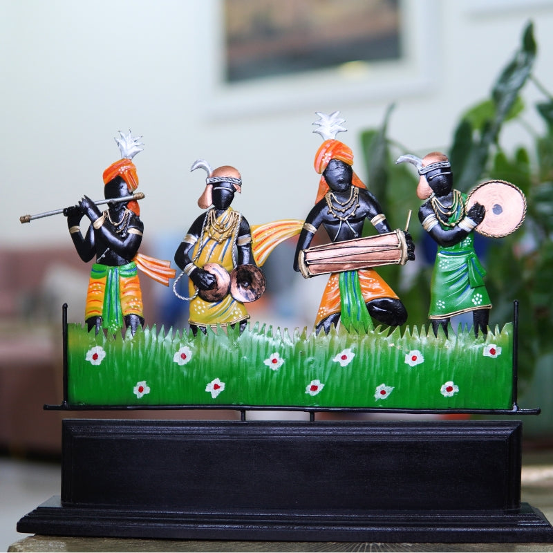 This vibrant handcrafted iron memento captures the joy of a tribal musical group celebrating a good yield in the fields. With rich colors and intricate detailing, it beautifully reflects the spirit of festivity, music, and gratitude for nature’s abundance.
