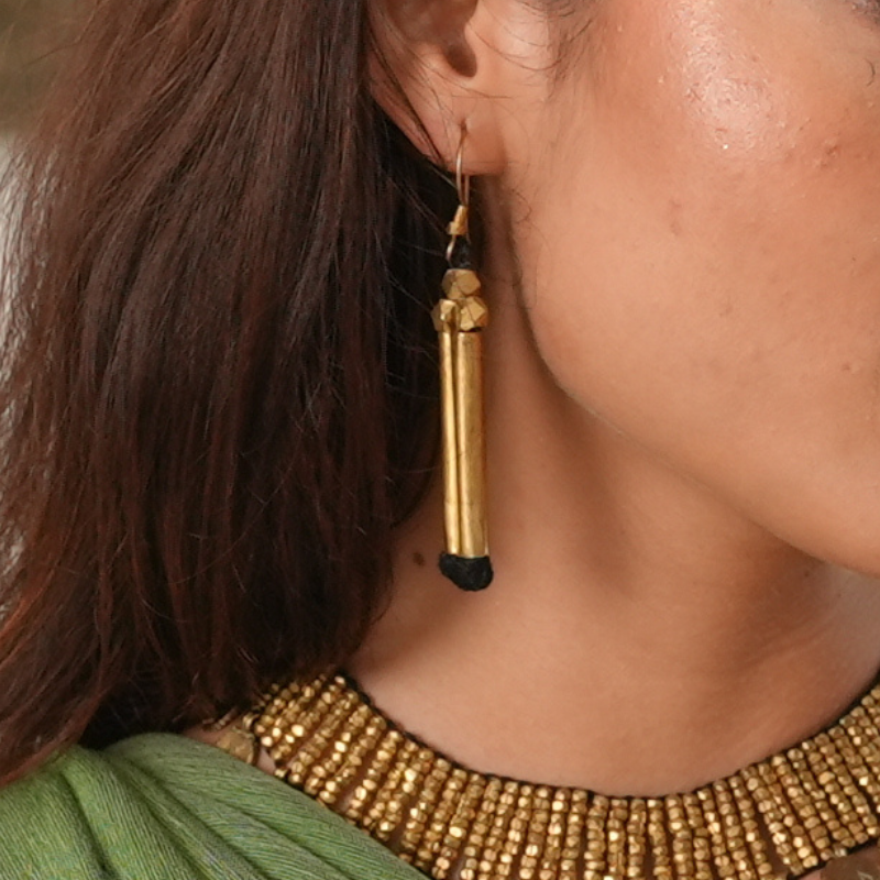Elegant handcrafted brass earrings, designed to radiate timeless charm and celebrate the artistry of traditional craftsmanship. Perfect for every occasion, these earrings add a bold yet graceful touch to your look.